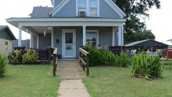 Charming 2 story 1,432 Square foot home near Jr. High and High School. Original charm of home has been kept. Original hardwood floors, tall baseboards, pocket doors and banister. Large covered front porch. Home comes with CH/A, pantry, gas oven range, microwave, refrigerator and dishwasher. Master bedroom downstairs has a large walk-in closet and private bath with jetted tub. Furnace replaced in November 2015. Most windows have been replaced. Oversized laundry room. Handicapped assessable. 2 car carport and fruit trees.
