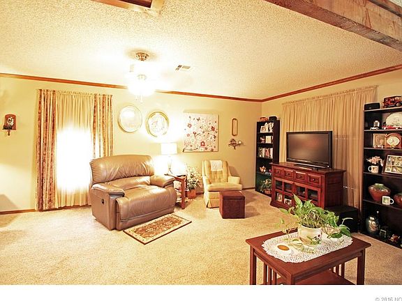 Nice 3 bd, 1 1/2 bath, large living area. Kitchen has new refrigerator, stove is 1 yr old, new lighting, new ceiling fans, storm cellar, carport, fenced back yard, 2 storage buildings. Neat & clean. Move in ready.