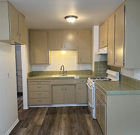 2 bedroom 1 bath duplex built in 1970 with approximately 700 SQ. FT. of living space. Kitchen with a gas range, disposal, tile countertops and dining area. Spacious living room. Bathroom with a shower tub combo. New laminate flooring and paint throughout! 1 car garage. Washer and dryer hook ups in garage. Central heat and air!. Tenant pays for Water/Sewer/Garbage.