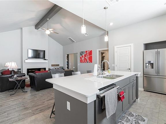 You will not want to miss out on this beautiful corner lot home in Chisholm Creek Farms! As you step inside this modern home you are greeted by open space and tons of natural light! The living room is just the place to kick your feet up and relax with vaulted ceilings and a fireplace built into the wall. The kitchen is a chefs dream with spice cabinets on both sides of the overhead vent, 5 gas burning stove top, subway glass tile backsplash and a large center island overlooking the living room. Get any extra work done in the home study with a built in desk! Primary bedroom is complete with barn doors heading into the private ensuite including a walk in shower, separate soaking tub, double vanity, and walk in closet. You can also unwind in the backyard with a covered back patio, and enjoy a beautiful Oklahoma sunset.