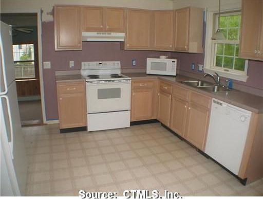 Fantastic bargain in Mystic! Only 12 years old with Pergo flooring, fireplace, open floorplan, set on a .46 acre wooded lot with a fenced in backyard.First floor bedroom. Bonus room/office in walk out basement. Home needs some minor TLC.