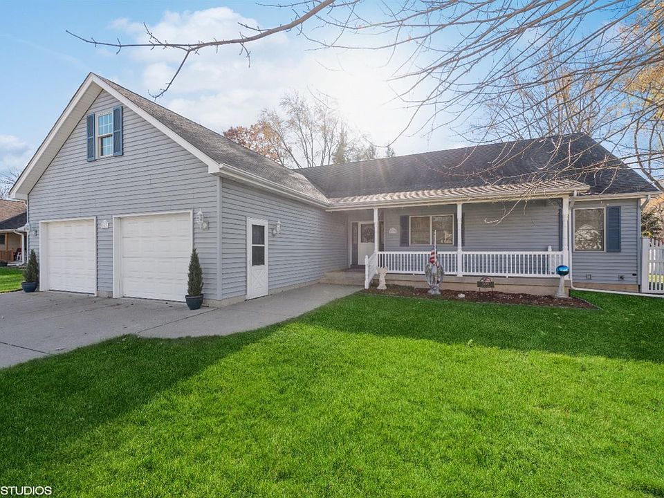 Immerse yourself in the allure of Chesterton living with this remarkable 3-bed, 3.5-bath ranch boasting a full finished daylight basement. A haven of comfort, it showcases ample cabinets, a formal dining room, breakfast area, and convenient countertop seating. Unwind in the expansive heated 4-seasons room, while relishing the convenience of included appliances, main floor laundry, and an oversized garage.Nestled in the heart of Chesterton, this gem offers proximity to an array of amenities, shopping, and diverse dining options, all while exuding the captivating essence of small-town charm. Step outside to a picturesque backyard oasis complemented by a shed, and pre-inspected for your peace of mind.Elevating relaxation is a delightful covered porch, inviting you to savor tranquil moments. Embrace the essence of Chesterton living in this meticulously curated home. Close to all expressways for quick access to the Chicagoland area.