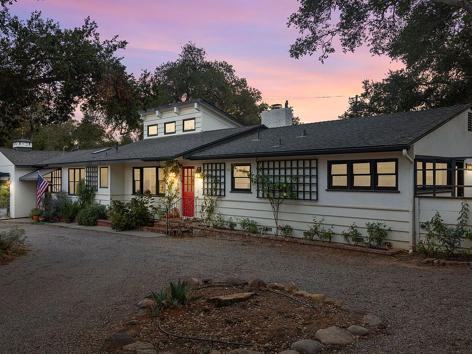 Located in the heart of one of Ojai's most desirable neighborhoods, the Arbolada! Majestic Oak trees, open sun-filled space, and shaded areas create a magical setting on this 1.5 acre property with a quintessential Ojai Ranch home. Enjoy the large yard with plenty of space for gardening and horses, relax poolside on a perfectly warm summer day or take a short stroll into downtown Ojai. Gleaming hardwood floors, vaulted wood ceilings, solar powered, spacious bonus room and recreation room are a few of the favorite features~ and, there's plenty of space to add a master suite and a guest house! Come to experience a very special home situated on one of the most beautiful and spacious lots in the Arbolada. New septic tank, new plumbing, upgraded electrical, extensive gardens, chicken coop, and 2 hook ups for RV's on property. Room for new dwellings to be built. One of the only homes in the Arbolada with flat usable land. Many interior upgrades all new bathrooms and kitchen. Side apartment for Mother in Law or a renter.