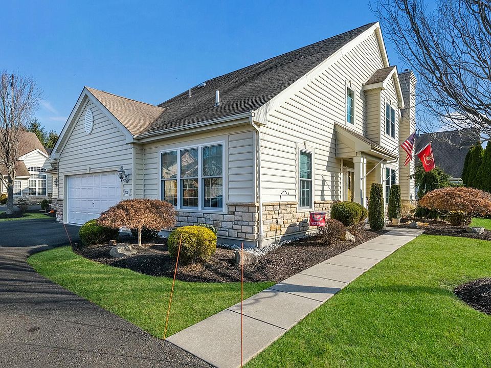 One of the first things you will notice is the attention to detail throughout this End of the Row, 3 bedroom, 3 1/2 bath, 55+ home in Lamplighter Village. At the main entrance you are greeted with a 2 story foyer with plenty of natural lighting, Hardwood floors and built-ins. My favorite area is the cozy Family room with Cathedral ceiling & Gas Fireplace.  Adjoining the Family room is an amazing eat in kitchen with plenty of cabinetry and granite counterspace. Other Kitchen features: Slider to an expanded patio with Retractable awning, Stainless steel appliances, Island with double sink & seating for 2+ and more.  The dining area is a wonderful combination of open and traditional.  I forgot to mention there are Hardwood floors throughout most of the first floor. On the way to the two first floor bedrooms, please be sure to check out the wet bar.  The Primary bedroom is huge with space for a small office or sitting area. Additional features;  tray ceiling, Hers and Hers closets {one is a walk in that is professionally organized}, Large Primary bath with whirlpool tub and glass enclosed stall shower. The second bedroom has a private  full bathroom with a tub/shower and upgraded hardwood flooring. Up the stairs you will find a loft area.  It has an area currently used as an office.  But would also function well as an exercise area, Den or a bedroom for guests.  This floor also has a Full bath with tub/shower and an additional room that is great for storage.  There is also a 2 car heated garage with inside access, Built ins, extra storage & GDO.  Other features of this lovely home: Newer Lenox Gas forced hot air heater with central air, Sound system,  The home has been professionally landscaped that is maintained by the association, except the landscaping around the side patio which is owner maintained {or it can be turned back to grass, if desired}, Security system, recessed lighting, Fire sprinkler system,  9 foot ceilings,  many ceiling fans and  New Andersen windows with a transferrable warranty! The Association has a Clubhouse with an exercise room, Library, large gathering room, Full Kitchen and outside Gazebo.  Residents can rent this for private functions.  I'm not sure if you know this area.  But the home is ideally situated for many great thing to do.  Whether it's a visit to the Shops at Valley Square in Warrington or Dining/shopping in Montgomeryville, Doylestown, Lahaska, New Hope, etc....                              Are you thinking about a lower maintenance lifestyle?  Here is a great option!