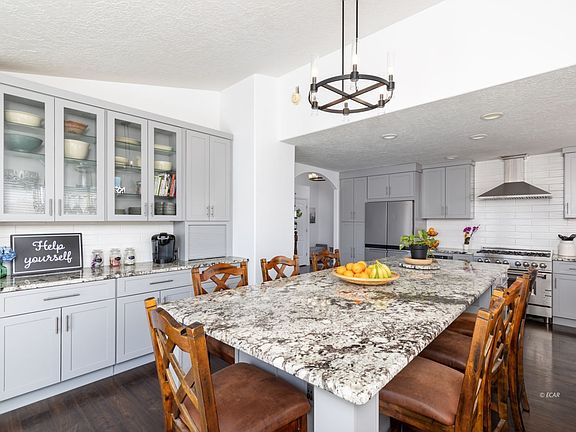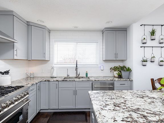 Upon entering this home you are met with a large foyer, the 1st living area is off this and the updated kitchen. Updated in 2022 with custom gray shaker cabinets, upgraded granite counter top and oversized island and a built in breakfast bar with upper glass cabinets and an appliance garage. Zline appliances with 36" 6 burner burner gas cooktop stove, drawer microwave, 4 door refrigerator, it's a chefs dream. The island has loads of storage and measures over 4 ft by 11 ft. Lots of room for seating. Off the kitchen are newer french doors to the updated deck giving access to the yard. Also off the main foyer are the stairs to the upper level which has 3 bedrooms including the primary with an ensuite and a full guest bathroom. Down to the first lower level has 2nd living room with back yard access, a bedroom, laundry with garage access and full bathroom. Off that again is an additional lower level with 2 bedrooms and storage area. Plenty of RV parking off the garage side of the home, on this centrally located cul-de-sac.