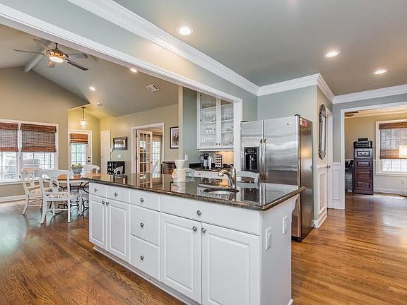 - Kitchen Features: Cabinets White, Pantry, Eat-in Kitchen, Stone Counters, View to Family Room, Kitchen Island