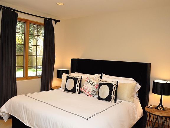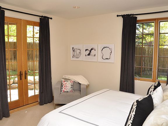 Located less than 1 mile from Aspen's downtown core and closer to Smuggler Mountain trailhead. Private entrance with master on main level. Great room with modern dAcor and open floor plan. Two secluded decks. Gas barbeque. River rock fireplace. Separate media/family room and wet bar with refrigerator. Media room also has a pull out queen couch for extra bedding option. Housekeeping: $40/hr