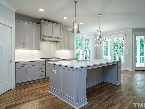 Gorgeous new construction custom bungalow in downtown Cary. First floor owners suite and first floor guest suite with full bath. Large, open kitchen and great room. Tons of windows. Covered porch with private backyard. Upstairs offer two more bedrooms, a bonus room and walk in attic storage. All this and close to the restaurants, shopping, brewery and coffee shop that help to make downtown Cary such a desirable location!