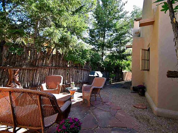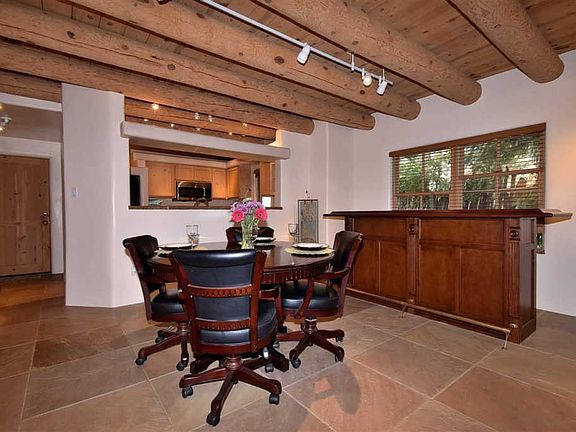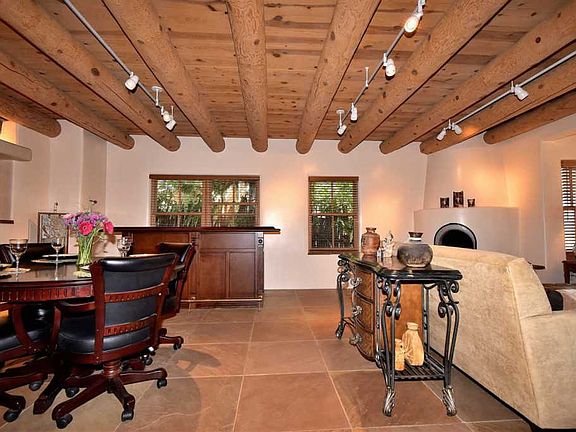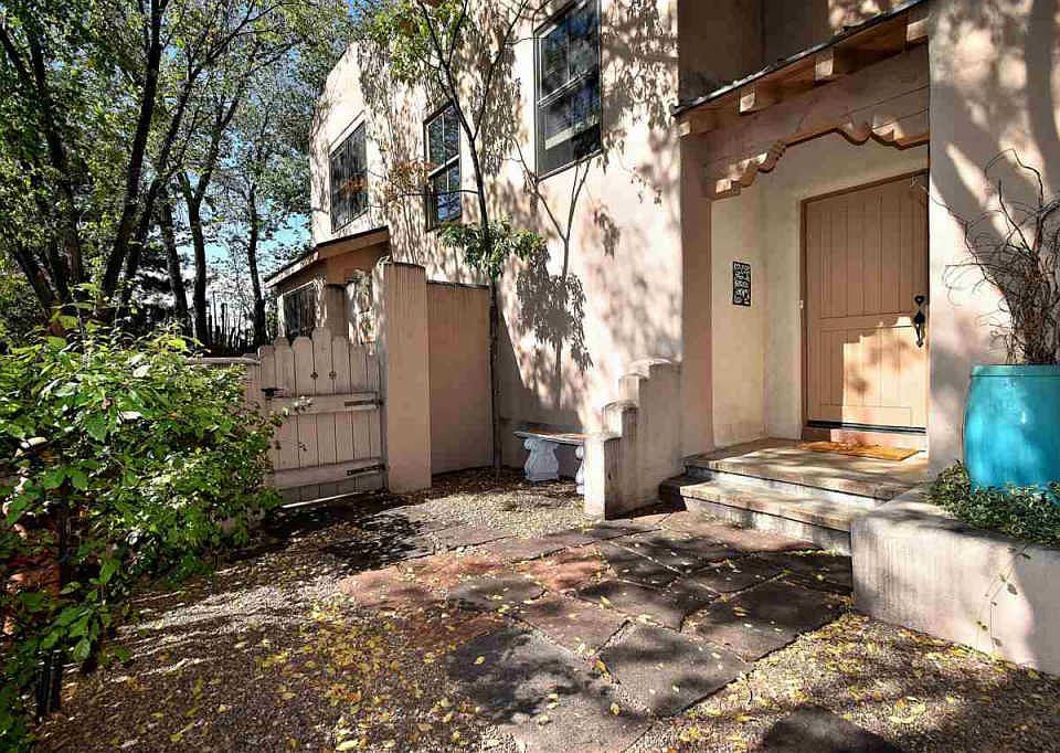 Santa Fe style condo close to the Plaza! This immaculate, two story condo has everything you want in a Santa Fe home; high ceilings with vigas, a corner kiva fireplace, tile floors downstairs, a comfortably sized kitchen with colorful Mexican tile, a luxurious, master bathroom with gorgeous Talavera sinks, a balcony to watch the Santa Fe skies and a garage! This light and beautiful home is located so you can enjoy downtown Santa Fe amenities on foot or with a very short drive.
