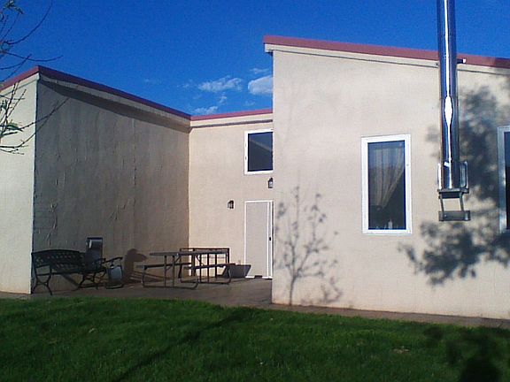 Uniquely designed and well-constructed home in Salmon. This home was built with styrofoam block and steel studs throughout for a sturdy, well insulated and energy efficient home. 2,190 sq. ft. home with three bedrooms, all with walk-in closets and 2 full baths. Large master suite with vaulted ceiling and private patio. Kitchen has loads of custom cabinets and includes all the appliances. Attached dining area will fit any crowd and has a stamped concrete patio access for backyard barbecues. Living room with vaulted ceiling, patio access, loft area for kids playroom or storage and wood stove. Home has 3 heat sources: water-source heat pump, in-floor radiant heat and wood stove. Attached single-car insulated garage with concrete apron and direct access to interior of the house. Oversized laundry with storage and has been plumbed for a sink & bathroom stool. Detached insulated metal shop can fit 3 cars and includes wood stove and industrial compressor. Above the shop is currently used as storage but would make a great studio apartment. Full concrete walk and patios around the house help to keep the dust and dirt out of the home. Beautiful terraced garden and flower bed on the south of home, fenced garden between house & shop and dog run in the back. Call listing agent for a preview.