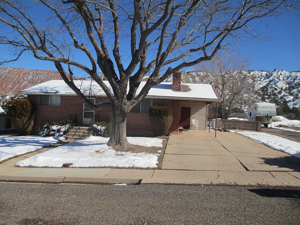 Great house just needs some TLC. Original Hardwood floors under carpet. 2 bedrooms on the main floor with the living room, kitchen and bath. basement have one bedroom and bath and a family room. Laundry is in the basement also. Nice storage room for your treasures. Walk out basement. Great fenced backyard with only the hills behind you. Gas furnace and central air. Single car carport.
