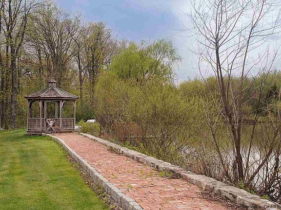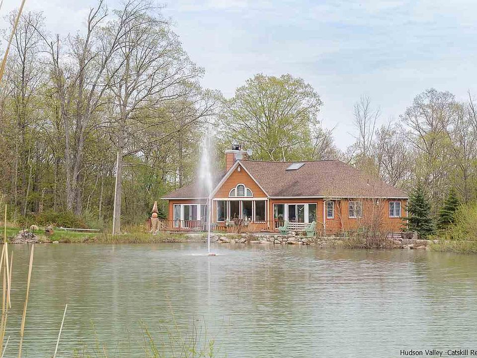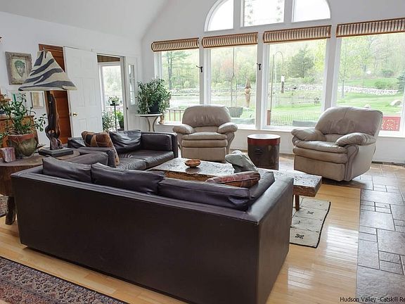 The amazing front yard of this home boasts a breathtaking vista of a sparkling pond, backdropped by the Shawangunk Ridge. It is contiguous to the 2,500+ acres of Minnewaska State Park and the Mohonk preserve. The pond is 18 ft deep at its center, and affords swimming, boating and fishing, or morning coffee. The wild life is abundant, including koi fish in the pond, deer, and the occasional black bear sighting. The house is a sweet, light filled contemporary on 18+ acres of mountain beauty. Huge windows, lots of light, hardwood and ceramic floors. The master bedroom with bath are on the first floor. There is a wonderful studio work space in the lower level that combines a place to make art with a place to see natural art at its finest. There are four outbuildings: a heated insulated garage that could be a guest cottage; a studio/shop; a storage shed and a tractor/equipment shed. This home is great for weekends, wonderful for kids as well as grownups.