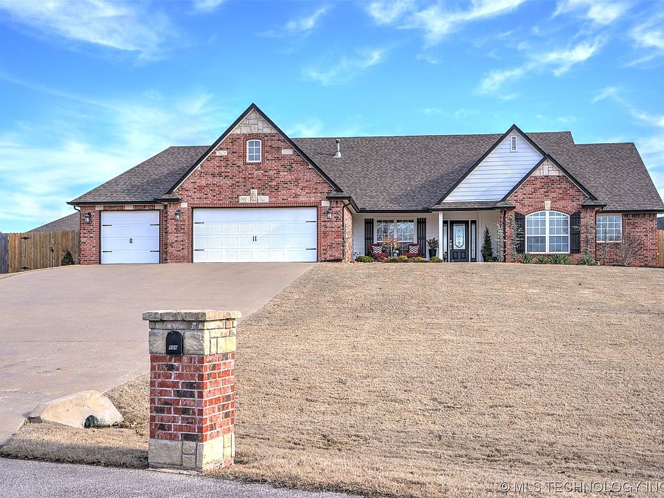 Fit, Finish and Color--Seldom do they come together as effectively as in this elegant, 4 bedroom, 3 full bath, just completed, Bonnie Jensen whole house design/remodel. 3 minutes from downtown and 10 minutes from Skiatook Lake, 509 South Tallchief Avenue is perched atop a hill near the Tallchief entry to Summerhill Estates. A sweeping front yard dominates the nearly 1/2 acre property offering great views from the front porch seating area. Exterior landscaping is new, too...Natural rock planting beds insure long term low maintenance. And lasting beauty. Inside the house is warm and inviting, bright and open. New paint and floor coverings, Quartz food prep surfaces, high end appliances and fixtures are evident in every room. Generously large windows lend natural light to formal dining and den, nook and kitchen. The Master suite is large and private, with its own bath, his and hers closets and new granite. Just down the hall, the primary guest suite includes its own full bath as well. Moving on past the entry foyer, dining room and kitchen leads to a hall full bath with well appointed laundry opposite.. Beyond the kitchen(Street side of the house) are 2 additional bedrooms and lastly the wonderfully executed huge garage you'll love the easy access to all 3 bays plus raised and dedicated storage closets for all of your out door toys and tools...