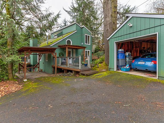 The best of living among the trees while being within minutes of river access, parks, restaurants, and grocery offerings in Sellwood, Johns Landing, and downtown Portland. You'll feel like you've escaped to a secluded tree house with modern luxuries like A/C and newer appliances. The vaulted ceiling, front porch, and expansive back deck make the home live large. Cozy up to the gas fireplace or enjoy TV on the deck. Meander through your fully fenced yard boasting a rainbow of 12 mature Rhododendrons, a Heritage Oregon White Oak, 2 in-ground Japanese Maples and so much more. Utilize the stairway leading from the backyard to head down the hill to access nearby amenities. All that, plus you can enjoy a rarity for this area: 4 on-property parking spots, including a garage! Ask your agent for a list of recent upgrades and featured foliage. The property's trees have been regularly tended to by arborists providing preventative care. During this January snow storm, the well cared for trees have done well and there has not been a power outage! See video link. No HOA! [Home Energy Score = 2. HES Report at https://rpt.greenbuildingregistry.com/hes/OR10224509]