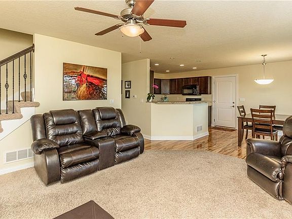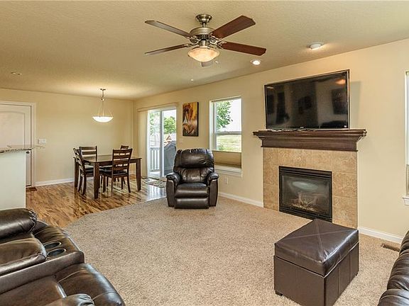 Move in ready Grimes 3 BR 2 story with 2.5 bathrooms. The main floor gives you an open kitchen with black appliances. A new refrigerator has been ordered and is included in the sale. Main floor living room with fireplace. Great main floor flex space that is perfect for an office, kids area, piano or more. Master suite includes a big walk-in closet and full bathroom with double vanity. No more carrying the laundry up and down the stairs with this 2nd floor laundry room. The washer and dryer are included as well! Check out the great view from your deck with tons of open space across the street! An awesome spot for 4th of July fireworks! Fenced backyard. Unfinished lower level with an egress window is great space and easily finished. Easy access to Hwy 141 and plenty of shopping nearby.