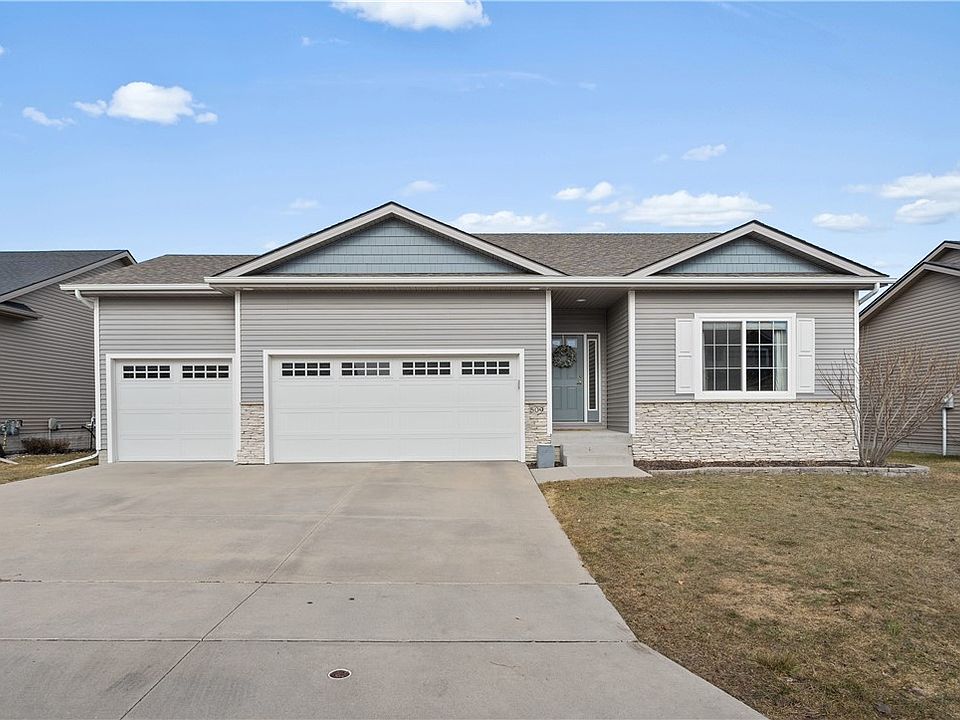 Welcome Home to this beautifully maintained 4 bed/3 bath ranch home, quietly tucked in the Meadowlark South neighborhood of Grimes. Enjoy the perks of living in the growing City of Grimes, but with a green, conservation area right in your backyard. From the moment you walk in the front door, you will feel the warm, inviting, open-concept layout of the home The primary suite is sure to wow with a trey ceiling, separate vanities in the bath & a walk-in closet. There are 2 add’l bedrooms, a dropzone, laundry & full bath on the main level as well. Head downstairs to find a finished LL w/ a family room set up for a projector screen and wired for surround sound, spacious 4th bedroom (or office) + 3/4 bath. Warmer weather is coming so get ready to enjoy some time outdoors with a fully fenced yard, deck, children’s play set & a recently added concrete pad on the side of the house. Close to parks, trails and easy access to Hwy 141-make an appointment to see this home today! All information obtained from seller and public records.
