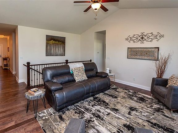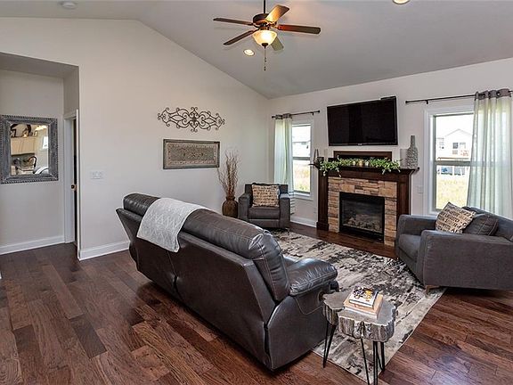 This beautiful 4 bedroom, 3 bath like-new ranch is located in a convenient South Grimes location backing to a bike trail! The open concept main level features a vaulted ceiling, hardwood floors & crisp white trim. The kitchen offers SS appliances w/ hood vent, granite counters, center island w/ addtl cabinets, pantry & opens to dining area w/ access to the large covered deck & back yard. The spacious great room has a fireplace & large windows. The master en-suite boasts a double tray ceiling, double vanity, linen closet, 6' tub w/ tile surround & huge walk-in closet connected to laundry. 2 addtl bedrooms w/ vaulted ceilings, a full bath w/ tile surround & drop zone w/ lockers finish the main level. The daylight lower level offers a huge family/rec room, custom bar w/ bev fridge, 4th bedroom, full bath & large flex space finished except for the ceiling. Upgrades include new tankless WH, 2x6 construction, surround sound (stays) & spray foam ceiling insulation for added sound proofing.