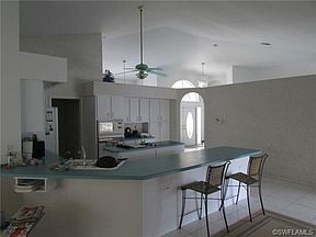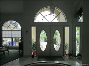 Listing agent: Jeff Miloff, Call 239-541-3723 for information. Come relax poolside at this waterfront home located on the corner of a cul-de-sac with beautiful front view of Alhambra lake and intersecting canal views from the back. Walk into this large double door front entry way and into the living room with great views of the pool and water. Large center island with cooktop and breakfast bar in the kitchen. Spacious master bedroom and bathroom with dual sinks, soaker tub and walk-in shower. Separate family room and formal dining room and office in the garage completes this home. Great boating access to several beautiful lakes including just minutes to Lake Kennedy and the waterpark Sun Splash.