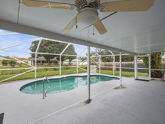 Highly sought after Becker Road area CBS Home! No HOA. Screened Heated Pool! New Metal Roof 2023! Impact windows! Impact reversible entry slider out to pool. Three bedroom, two bathrooms, versatile floor plan with living room and family room, or one can be used as a formal dining room. Kitchen with granite counters, eat in dining area, breakfast bar, pantry, and adjacent interior laundry. Fully fenced private back yard with pergola and garden area. Freshly painted pool deck. New pool heater 2024. Vaulted ceilings, split floor plan, primary bedroom has two walk-in closets, and roman tub with separate shower. Large driveway, and two car garage. Great location close to I-95 and Turnpike, Tradition, Shopping, Dining, and schools! This one is a must see!