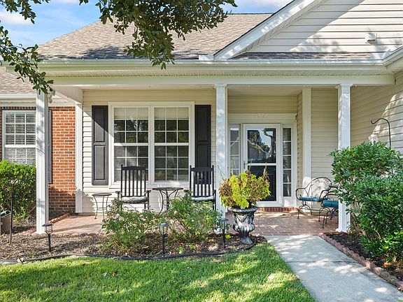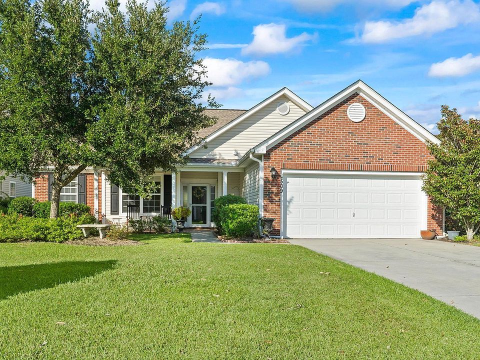 Welcome to 509 Saddlebrook Court, where comfort meets elegance in this beautifully maintained 3-bedroom, 2-bathroom home with attached 2 car garage! From the moment you arrive, you'll be captivated by the charming curb appeal, complete with a manicured lawn and inviting front porch. Step inside and be greeted by a spacious foyer, where vaulted ceilings and arched entryways with stunning column detail create an airy and open atmosphere. To the left of the entry, you'll find a formal dining area, perfect for hosting guests or easily converting into a home office. The heart of the home is the open-concept kitchen, featuring sleek white shaker cabinets, a wraparound granite counter with a breakfast bar, stainless steel appliances, and a pantry. The kitchen opens to a cozy breakfast nook and the living area, which boasts vaulted ceilings, creating a bright and expansive feel. The Carolina Room, bathed in natural light from large windows, seamlessly extends the living space, offering the perfect spot to relax or entertain. The primary bedroom is a true retreat, featuring vaulted ceilings, large windows, and a luxurious ensuite bathroom with French door entry. Enjoy the walk-in closet, double-sink vanity, and a custom tiled step-in shower with a transom window that adds a touch of elegance. Two additional guest bedrooms are equally well-appointed, with easy access to the guest bathroom. Step outside from either the Carolina Room or breakfast nook to the custom paver patio, where you can unwind with serene pond views. Whether you're hosting a BBQ or enjoying a quiet morning coffee, this outdoor space is sure to delight. New windows in 2023, guest bathroom updated in 2021, roof was replaced in 2019, heat pump 2016, laundry room upgraded in 2022, new water heater, and attic has a safety rail. Residents of Brynfield Park enjoy fantastic amenities, including a community pool, playground, sidewalks, and scenic ponds. Plus, with shopping, dining, and the beach just minutes away, this location offers the perfect balance of convenience and tranquility. Don't miss out on the opportunity to make this stunning property your new home! Square footage is approximate and not guaranteed. Buyer is responsible for verification.