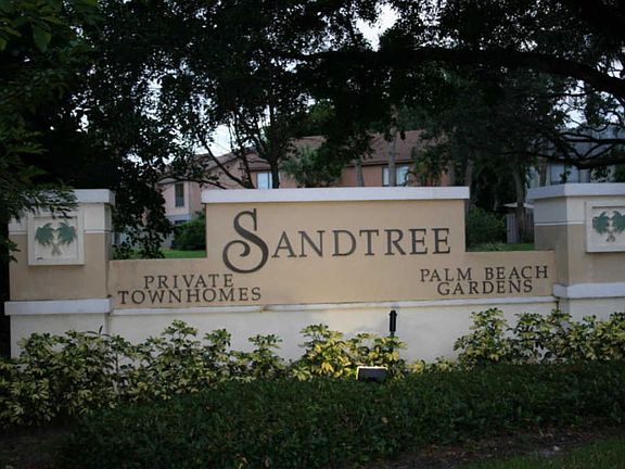 Don't Miss this opportunity! Sandtree end unit~ 2 Master bedroom suites, 2.5 baths located in Palm Beach Gardens CLOSE to 95, Tile downstairs, Kitchen has beautiful light wood cabinets. This corner unit has many windows light bright sunny unit. Sliding doors off kitchen leads you to screen porch area. Home is in best location in the back of neighborhood close to community park area. Community has the low HOA fee. Pets are welcome. NEW A/C unit