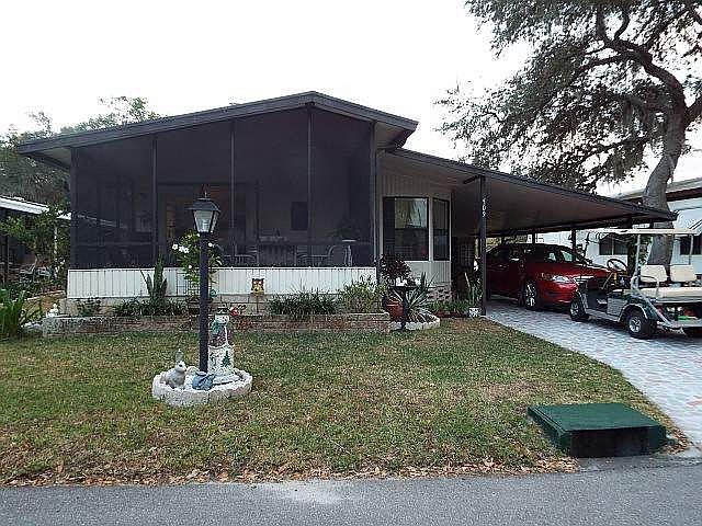 GREAT FISHING This well maintained 2 BR 2 BA perimeter lot home is ready to move in. Extended shed, carport, painted driveway, light, bright and equipped to start your snowbird or vacation getaway, covered front porch, lanai perfect place to start or end your day, Home is in lake park so bring your boat or fishing gear. LEASED LAND in Lake Glenada RV MHP SB1996 in fourstarhomes.com