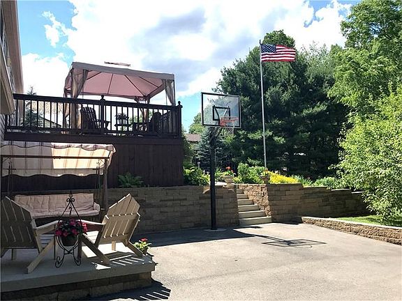 Simply gorgeous!! Unsurpassed quality & style unite in this immaculate ranch precisely perched on a super private tree-lined corner lot offering an unparalleled backyard retreat. A relaxing concrete patio is accentuated by an aesthetically pleasing centrally located flower bed while extending a cordial welcome through a decorative glass-paneled front door into a wide-open country-inspired floor plan brimming with beautiful tongue and groove oak-clad walls and trim. Complimented by hardwood flooring and brilliantly illuminated through a bow window, the sun-drenched oversized dining room underscored in hardwood flooring makes entertaining a breeze. A dramatic arched opening trimmed in oak affords a subtle transition into the open & airy living room anchored on both ends by a sliding door lending access to front patio and expansive party-size rear deck overlooking the swimming pool and lush, park-like backyard spotted with mature trees and lined for privacy. Fully-equipped eat-in country kitchen underscored in crisp ceramic tile showcases abundant oak cabinetry, resilient Corian countertops, sleek stainless and black appliances, coordinating tin backsplash and eat-at serving peninsula. Kitchen also conveniently access rear deck. Hardwood escorts you down a hall where rest and relaxation await in 4 comfortable bedrooms w/ sizeable closets. A full bath is accompanied by an oversized oak vanity, coordinating medicine cabinet and corner shelf with contrasting earth-toned ceramic floor, completing the main level. Master bedroom has a large bathroom with jetted tub and walk in shower with access to walk-in closet. Descending the stairs, living space continues into the finished walk-out basement hosting spacious laundry area, family room, and bonus space that can accommodate a 5th bedroom, den, playroom or workout area. Basement promptly accesses roomy 2-car garage and walks out to an intimate concrete patio displaying stunning backyard visuals, while offering peaceful serenity and a quiet place to escape reality. This home is well-insulated for year round comfort, efficiency and affordability. Ideally sited in a quiet, established neighborhood across from 5 acres of township owned property including a ballfield and numerous ATV/walking trails and just minutes to Route 422. Updates include new windows, siding, and leaf guard gutters.