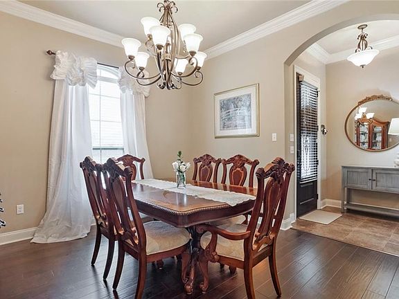 Fantastic floor plan, pretty architectural details & high ceilings. Chef's delight kitchen has XL granite island, gas cooking, stone backsplash & pantry. Private owners suite split from other bedrooms. Guest bedroom suite on the opposite side of the house. Whole house Brilliant water filtration system. Flood Zone C, the best! Cool backyard views on this lot backs to the forest. Covered patio with extended sun patio, fenced backyard with rear yard access. Community pool, playground & great school district.