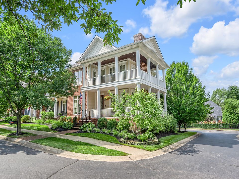 Wonderful opportunity to own one of six stately townhomes in the exclusive Still Meadow neighborhood! You are sure to appreciate the 10' ceilings on main level, covered porches, substantial mill work throughout. Formal living room off entry features an impressive fireplace mantle and coffered ceiling, open to the dining room and kitchen. Smokey blue base cabinets add a unique touch to the kitchen with granite countertops and stainless appliances, plus a bar area with wine cooler and ice maker. Family room has French doors leading to a private deck with retractable awning. First floor primary suite with dual vanities, whirlpool tub and walk-in tiled shower. A bedroom suite upstairs has a en suite bath, while the 2 other guest rooms share a Jack-Jill bath and have access to covered porch. An office/rec room in basement could also be used as a 5th bedroom. Other features include 2 car attached garage, central vac, main and lower level half baths, recently replaced furnaces.