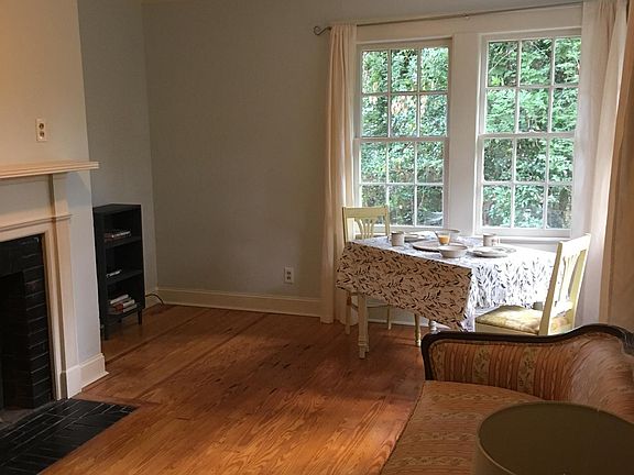 This apartment is located centrally to Fayetteville/Fort Bragg, Raleigh and Chapel Hill/Durham. Within walking distance of downtown including coffee shops, dinning, library and local brewery's. It is located in a quiet neighborhood with a spacious private backyard with gardening beds, a rare find for apartment living. Newly renovated bathroom with brand new sink, toilet, flooring and shower/bath. Plenty of windows bring natural light into the space. The second bedroom could make a great office space. Kitchen has an oven with electric stovetop, fridge, microwave, large farmhouse sink and washer/dryer is included in rental. Owner pays trash