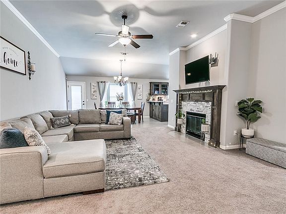 Welcome to your dream home! This meticulously maintained, one-owner home offers a fantastic floorplan! Boasting 3 bedrooms and 2 bathrooms, this home provides ample space for comfortable living. The large back covered patio invites you to relax and unwind. The heart of this home is the expansive kitchen, complete with quartz countertops and quiet-close cabinets. A perfect kitchen for hosting memorable gatherings. Equipped with a storm shelter for peace of mind. With acceptable offer, the refrigerator stays, ensuring convenience from day one. This home offers access to the nearby park, equipped with a playground, basketball court, and walking path. It's an ideal place for families to bond, to stay active, and to embrace the outdoors. Commuters will appreciate the quick access to major highways, including Hwy 9, I-35, and Hwy 77, making your daily travel a breeze. Imagine the convenience of a well-connected location while still enjoying the tranquility and charm of a peaceful community.