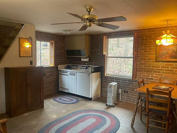 Rustic ''Glamping'' type getaway. This property is located on a private road off of Tarkiln. One room downstairs with kitchenette, eat in space and living room with fireplace.