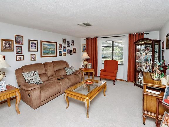 Three bedroom/Two bathroom pool home filled with warmth and charm and sits on an oversized lot overlooking conservation. Carpet, ceramic tile, ceiling fans, sliding glass doors, and fireplace all work together to bring this home alive. Step through the iron gate and walk up to the front door. Open the door and step into a lovely foyer with archways leading to living room, dining room, and kitchen. Spacious kitchen overlooks dining room and family room. From the kitchen window is a view of the lanai, pool, and huge backyard sporting a fire pit. Family room houses a wood-burning fireplace decorated in stone. Open sliding glass doors and walk out onto the covered lanai which overlooks the screen-in pool. Take a look at the spacious backyard with a fire pit sitting at the back of the property. Wake up each morning to beautiful views of the pool through the sliding glass doors in the master bedroom. Double vanities in the master bath allow for lots of room for your personal items. Tiled walk-in shower in master bathroom and a linen closet too. Living room could be a nice place to sit and read, sit and relax, and have family conversations, Enjoy tv or playing games in the family room. Open floorpan allows for an easy flow when entertaining and keeps everyone involved. Split floorplan with huge bathroom with shower/tub combination and sliding doors out to a small side patio. Feel the warmth in this home where memories were made. Pictures tell the story. Make this home yours and write your own story.