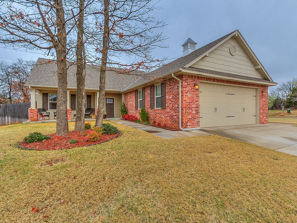 Immaculate Condition! This lovely home shows pride of ownership!. Step into this home with an open floor plan and you will see rich wood cabinetry that goes clear to the ceiling and gorgeous granite counter tops. Dark wood flooring flows throughout the living room, kitchen, & master bedroom, and master closet. The master bedroom sets off by its self with a large luxurious master bathroom with double sinks, and whirlpool tub. Bedrooms on the other side of the home are a good size. The laundry room can also double has a home office as it has a built in desk. This home has a great layout, rich wood through out, granite counter tops. The garage is extra big for that vehicle and has a built in lift to take stored items to the attic. Outside enjoy your front or back porch, both are covered. A picture is worth a thousand words & this home is picture perfect. It is in great neighborhood that is convenient to shopping, restaurants & close to I-35.