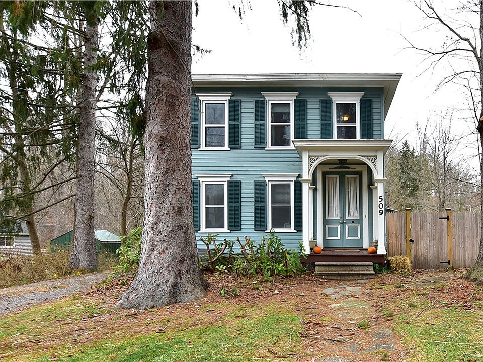 Here's your chance to own a classic in the heart of Brooktondale! This lovely two-story Italianate from 1840 has been lovingly cared for throughout its history. Warm and inviting, this 4-bedroom, 2.5 bath home with a grand staircase offers large living and dining rooms and a spacious eat-in kitchen with stainless appliances. A wood stove centrally located in the dining room heats the whole house, as does the natural-gas furnace. Beautiful hardwoods and tile throughout, with radiant floor heat in the kitchen and baths. A three-season sunroom looks out to the fully fenced yard, beyond which are the steps leading down to your own piece of Six Mile Creek, just a few feet from a gorgeous swimming hole. An easy walk to Brookton's Market, the community center, and the Old Mill, and a short drive to Shindagin Hollow. Isn't it time you came home to Brooktondale?