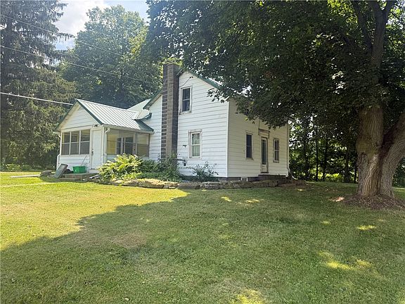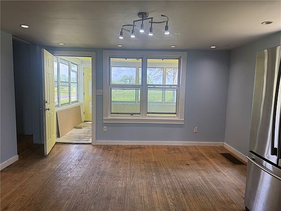 Nestled on just under 2 acres, this charming corner-lot farmhouse offers endless possibilities. The 2-bedroom home retains its original character while featuring modern updates, including a renovated kitchen with a formal eat-in dining area. A cozy pellet stove in the living room efficiently heats the entire house, adding both warmth and ambiance.