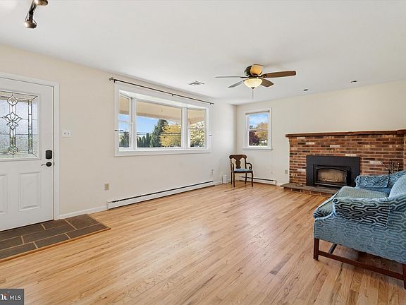 Charming First-Floor Living with Private Backyard Oasis! Welcome to comfort and convenience in this beautifully maintained 3-bedroom, 1.5-bath home offering desirable first-floor living in a tranquil, tree-lined neighborhood. The spacious Primary Bedroom features a private en-suite powder room and custom built-in closet storage—a perfect retreat at day’s end. Entertain effortlessly in the bright Dining Room, where sliding glass doors lead to a large covered brick patio—ideal for outdoor dining, morning coffee, or evening gatherings. The fenced rear yard offers exceptional privacy, mature trees, and a handy shed for added storage. You'll love the sun-filled Kitchen with timeless wood cabinets, durable Corian countertops, and a window over the double sink that frames peaceful views of the backyard. A generously sized Laundry Room and mud area with direct garage access adds everyday convenience. Enjoy cozy evenings by the brick fireplace in the inviting Living Room, highlighted by a sunny bow window and gleaming hardwood floors, which continue throughout the Dining Room and all three bedrooms. Need space to work or play? The huge basement features two workbenches, built-in storage cabinets, a utility sink, wood stove, and a separate storage room with shelving—a hobbyist's dream! This home is the perfect blend of warmth, functionality, and outdoor serenity. Don’t miss your chance to see it in person—schedule your private showing today!