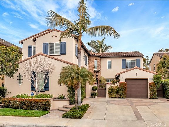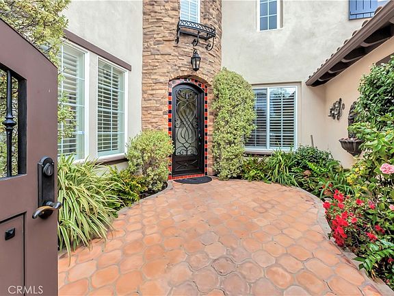 Treat yourself to privacy, space, & spectacular GOLF COURSE VIEWS offered by this Talega home in a highly desirable location! Enviably set on a peaceful, tree-lined double cul-de-sac street, this stately residence is a must-see. Accentuated by lush gardens, a gated terra cotta courtyard leads you to its ornate, arched entry. Upon entering, you'll be drawn to the welcoming ambiance of a stunning interior highlighting warm colors & beautiful tile flooring. Large windows adorned w/plantation shutters immerse the main gathering areas in abundant natural light. Exposed wood beams add character & depth to the LR while an elegant fireplace sets the mood for unwinding or entertaining. Stone elements on the facade match the accent wall in the DR where art niches allow you to display your prized mementos. Under recessed lighting, the tastefully remodeled kitchen is equal parts function & style w/gleaming black countertops contrasting gorgeous white cabinetry. Stainless steel appliances, a pendant-lit multi-seater island, & nook complete this remarkable culinary space. After dinner, grab a selection from the nearby bar's built-in wine fridge and sip a nightcap in your backyard oasis. On leisurely afternoons, curl up with a good book or catch up on your favorite shows in the FR. Ultimate comfort awaits you in the 5 well-sized bedrooms, accommodated by 4 tasteful baths, including one with a frameless glass shower. Perhaps the best spot in the house, the primary suite jump-starts your morning w/serene vistas while a ceiling fan keeps you cool in the summer. Immerse yourself in spa-like relaxation in its opulent ensuite, showcasing dual vanities, a standalone shower, & soothing soaking tub. From hosting movie & game nights to setting up a hobby area or play space for the little ones, the UPPER LEVEL BONUS ROOM is a versatile spot easily transformed to meet your needs. On par with the impeccable 2-level layout, the backyard is a slice of paradise set amid a picture-perfect backdrop of fairway views. Seat guests at the built-in BBQ station as you fire up the grill for memorable weekend cookouts. Towering palm trees, a fountain, & vibrant foliage lend a tranquil vibe as you sip your morning coffee or toast the sunset at day's end. Features include 3 car attached garage & an extended driveway for additional visitor parking. Conveniently located near schools, shops, & restaurants, this delightful gem is an ideal place to call home. Come for a tour while it's still available!