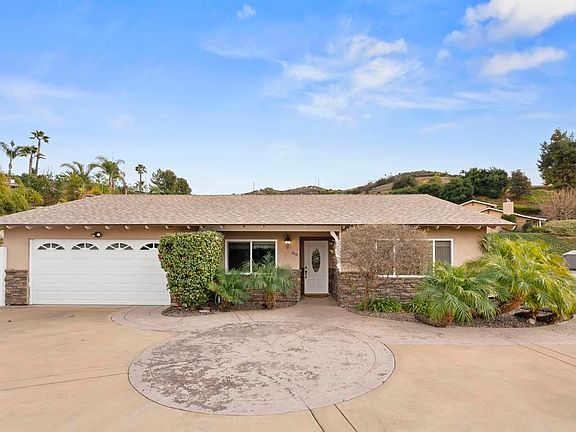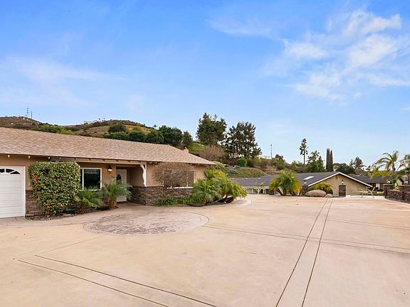 Nestled in the well established Shadow Mountain neighborhood, this exceptional single-story home offers breathtaking views and an unparalleled outdoor living experience. The expansive ¾-acre lot is thoughtfully designed for both relaxation and entertainment, featuring a resort-style backyard with a sparkling pool, raised spa with a cascading waterfall, and an exciting hillside slide. A lush turf area, wood-burning outdoor fireplace, and spacious patio create the perfect setting for gatherings, while panoramic sunset and city light views enhance the ambiance. Inside, this 4 bedroom 2 full bath, 1949sf home is well-maintained and offers wood flooring, granite countertops and crown molding. Most recent upgrade include a new roof (April 2024) and fully paid solar, ensuring energy efficiency and long-term savings. The fully fenced property also offers a large driveway with ample space for RV and boat parking. This multi-layered lot offers mature fruit trees and higher levels of private seating areas that add to its charm. Combining luxury, functionality, and a prime location, this Granite Hills gem is the perfect place to call home.