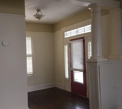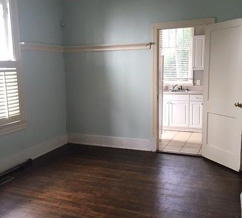 Downstairs unit with so much to offer! This beautiful duplex is located downtown, 15 minute walking distance to Forsyth Park. Come live here and enjoy 2 decorative fireplaces, inlaid hardwood floors, a coffer ceiling, PLANTATION SHUTTERS, and freshly painted walls. There is both a living room and dining room. This unit has a master bedroom with a small full bathroom and a larger than normal (for downtown) closet. The 2nd bedroom is a good size with 2 windows (with blinds installed) and a smaller closet. Enjoy the huge front porch, or step out back onto a smaller back porch that leads into a fenced in backyard. There is a parking pad behind the backyard that is yours to use for your vehicle. This unit has a stacked washer/dryer, central air conditioning, monitored alarm system, and off street parking. 1 Pet is ok. You must show proof that the animal is spayed/neutered and up to date on shots. Non-refundable pet deposit is $150. This unit is ideal for college students, or young professionals. Call or text me (Molly) to see it! No smoking allowed in the house. You'll pay your own utilities.