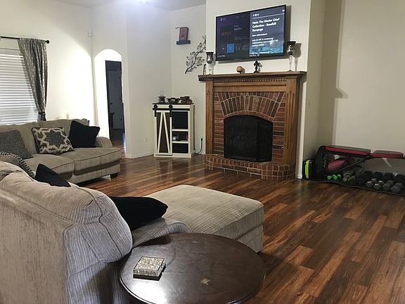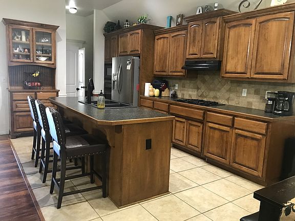 Updated Smart home on cul de sac with new stainless steel appliances, mature trees, fenced yard & outdoor fireplace. 4 bedroom PLUS flex room which can be used as formal dining, office or extra bedroom. The outdoor space is great for entertaining. This charming neighborhood even has a walking trail to nearby elementary. Also has storm shelter, lockable gun cabinet, wired with CAT 5, shed, garage workbench!