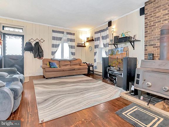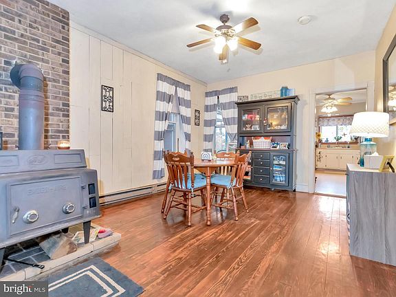 This solid brick twin home has original hardwood floors and 9 foot ceilings and if you like porches, you'll love this house! Not only is there a front porch but there is a side porch off the kitchen as well as a second floor porch off one of the bedrooms. The living room and dining room are open and spacious with walls accented by reclaimed barn wood. The eat-in kitchen has a pantry, abundant cabinets, newer laminate flooring, a stainless-steel smooth top electric stove, dishwasher, ceiling fan and stainless steel double sinks. The second floor layout consists of the main bedroom with two closets and ceiling fan, a second bedroom (currently in use as a home office), a third bedroom with access to the upstairs porch and a full bathroom. The bathroom was just fully updated in 2018 and features new flooring, new tub, new vanity and new toilet. The finished third floor completes the layout of this home. It is currently in use as a bedroom, but this space could also serve well as a playroom, office or space for exercise equipment. The homeowners heat the home with their woodstove in the living room but there is electric baseboard heating as well. The water heater is brand new this year. The basement has outdoor access, the yard is fenced, and there is a shed. There is room to park two cars off the alley to the rear of the home, as well as on-street parking in front of the home. Please note, this home is being sold "as is", i.e., buyers are welcome to do inspections but should expect no repairs and/or credits in lieu of repairs as a result of those inspections. The sellers will address items required, if any, for the Pennsburg Borough U&O. This property is conveniently located near major routes, with the Quakertown interchange of the PA Turnpike just minutes away and access to Route 422 and I-78 fairly convenient. There are a plethora of parks nearby, both municipal and county. The Montgomery County Parks system offers a multitude of recreational opportunities including hiking, fishing, boating, 25 miles of horse trails, birding and playgrounds plus seasonal activities such as cross country skiing and summer concerts and festivals.