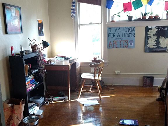 509 West Nevada has a huge connected dining room and living room. 4 bedrooms and 1.5 baths fill out this beautiful large old school main floor. Tons of vintage trim and nooks and crannies. check the pics! Really nice hardwood floors, large bathroom, and multiple entrances and exists to the space. Comes with 2 free parking spots and coin operated laundry in the basement. The 500 block of West Nevada is 4 blocks from South Lincoln nestled in sunny West Urbana. Front yards and bike ability attract young professionals, artistic undergrads, and grad students. Brick lined streets bring all the charm West Urbana has to offer. Your minutes by bike to downtown Urbana. There you will find places like pizza M, flying machine coffee, Sipyard, Amara yoga, common ground food co-op, the farmers market, and Strawberry fields to name a few of the benefits of West Urbana. Free parking for 2 cars! Central air Perhaps a cat or dog. Coin operated laundry. Tenants only pay wi fi