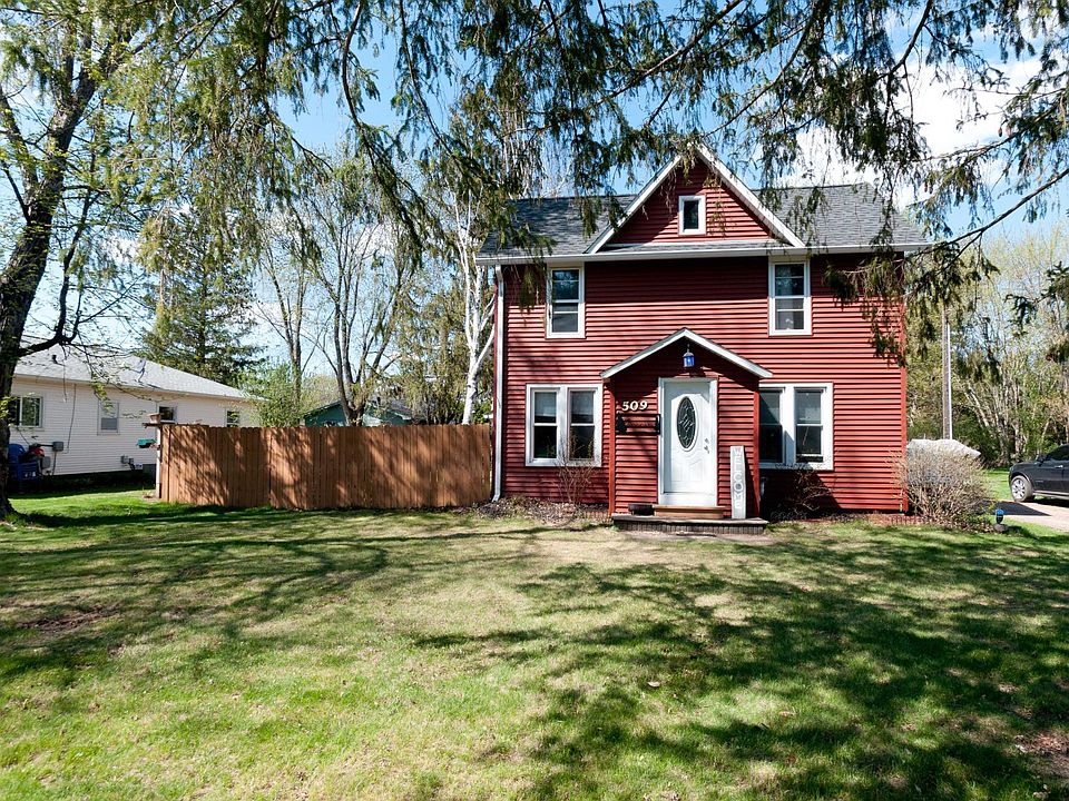 Welcome to this home in the Village of Cameron, where space, functionality, and location come together beautifully. The home sits on a nicely sized lot with a fully fenced backyard—perfect for privacy, pets, or outdoor activities. The maintenance-free exterior offers great curb appeal, so you can spend more time enjoying your home. Inside, you’ll find a spacious main level featuring a large kitchen with plenty of room for meal prep and storage, a formal dining room ideal for hosting gatherings, a full bathroom, and a convenient main-floor laundry room. The layout is designed for both comfort and practicality. Upstairs, four bedrooms and a second full bathroom provide all the space you need for family, guests, or home office options. The attached 30' x 26' insulated garage is a standout feature, offering excellent space for vehicles and storage, along with a dog door that leads directly to the backyard. This home has been designed for everyday living and ready for you to move right in.