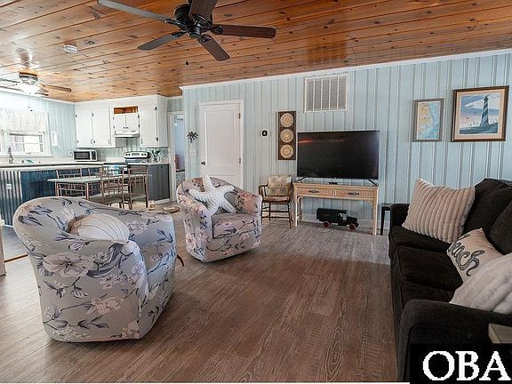 Charming Classic Outer Banks Cottage – minutes from the Beach & Bay!  This Outer Banks coastal retreat offers the best of bayside living with three bedrooms and two full baths, all just minutes to the beaches of Kill Devil Hills and scenic Bay Drive along Kitty Hawk Bay.  Enjoy single story living filled with coastal charm, featuring original wood details, and sold partially furnished. The open-concept living, dining and kitchen area provide ample space to entertain while keeping a low maintenance lifestyle.  The kitchen has been updated with stainless appliances and solid surface counter tops, and the 2nd fridge in the garage also conveys.  Outdoor living is a must have at the beach, and this property provides multiple outdoor spaces, including a front covered deck, a spacious screened in porch off the kitchen, and a sun deck that leads to the backyard.  This cottage also provides ample storage with the one car attached garage, perfect for storing all your beach gear, and the huge attic space that is accessible inside the garage.  The paved driveway provides plenty of onsite parking, and the community offers an optional HOA for just $35/year that provides direct beach parking and access at Avalon Pier, as well as a community boat ramp for sound access.  Other notable features: NEW Roof 2019, NEW Solar Panels 2021 (electric bill averages $13/month!!), and NEW HVAC 2024.  Located in a prime OBX location, you’ll love the easy access to the ocean, sound, and all the best local spots—whether it’s a day on the sand, biking along Bay Drive, or enjoying nearby shops and restaurants.  This is the ideal place to make memories, enjoy coastal breezes, and embrace the laid-back Outer Banks lifestyle. Don’t miss this opportunity to own a true OBX gem!