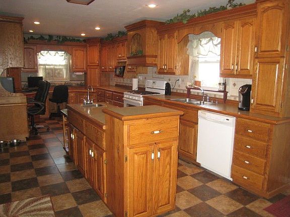 Spacious 4 bedroom/3 full bath home with lots of custom and extras. Custom built oak kitchen has wine/pop holder, 2 lazy susans and two sinks, a marble top prep area, and an office/computer area, plus more! Matching custom oak lighted china cabinet in dining room. All rooms freshly painted. Large fenced yard provides a private retreat with a deck, pavilion, sunroom, two fire pit areas, Plenty of perennials and landscape designed to create privacy. Sunroom includes solar panels to make it a green house or panels to close it up to use as storage shed. All measurements are approximate.