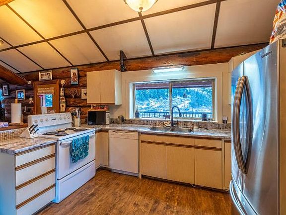 Unique log home with updates throughout, situated on just under 4 acres! Enjoy rural living while knowing the comforts of the downtown core are just 30 minutes away. The main floor of this two-storey, 1,554 sqft home features a charming kitchen with brand new counters, a well-sized dining area, a large living area with a 7x15 loft above it, and a 3 piece bathroom. The lower level of the home includes two larger bedrooms, a 4 piece cheater style ensuite, and a generous laundry area/flex space. On this 3.9 acre lot you will find a 40x40 detached shop with tons of power, perfect for a craftsman or handyman, plus two chicken coops. Updates to the home include the brand new kitchen counters, updates to both bathrooms, updated flooring, updated windows (2017), and the exterior logs were re-stained and re-chinked (2015). All meas. are approx. and should be verified by the Buyer if important. 2021-02-07