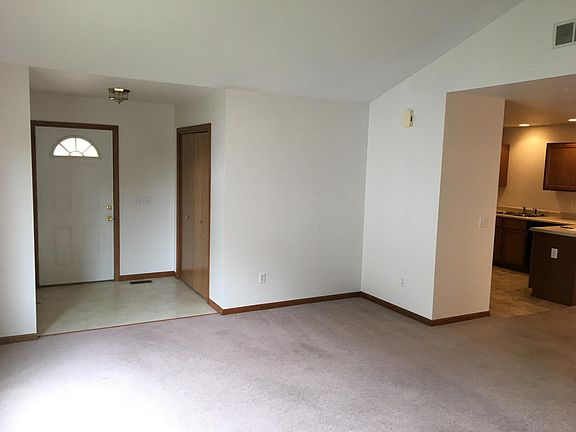 Two bedrooms, two bathrooms and over-size two car garage with automatic door opener. Almost 1200 square feet in an open floor plan with great room with cathedral ceilings. Large kitchen with lots of storage and full-size pantry. Laundry room with available washer and dryer. Master bedroom/bath with walk-in shower, closet and toilet room. Nice deck and backyard. Located on Water Street in Angola across from Hendry Park Elementary School and Commons Park. Pre-qualification required prior to showing. Please email information about yourself including employment, housing history and who will be in your household to Jeff. Lawn care included. Tenant pays gas, electric and water/sewer. Small pets (cats / dogs under 10 lbs.) may be ok with additional rent and deposit.