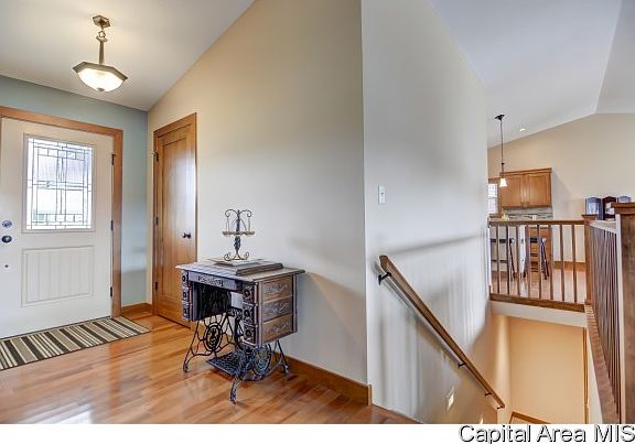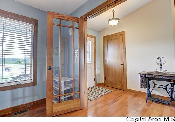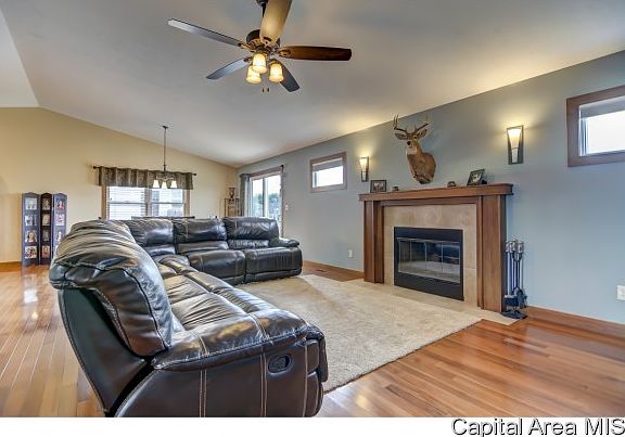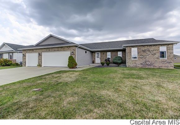 This beautiful 3 bedroom ranch offers many upgrades and is move in ready! Hardwood floors run through the foyer, living room, office, kitchen and dining! Off the foyer you will find French doors to to an office space (used as bedroom). Vaulted living room opens to dining area (door to deck/backyard) and kitchen with breakfast bar, granite counters, custom tile backsplash, and stainless appliances. Mudroom/laundry room off THREE car garage is spacious with tile floor. Master suite features a walk in closet and large bath with separate tub, shower and two sinks. Full basement with egress.