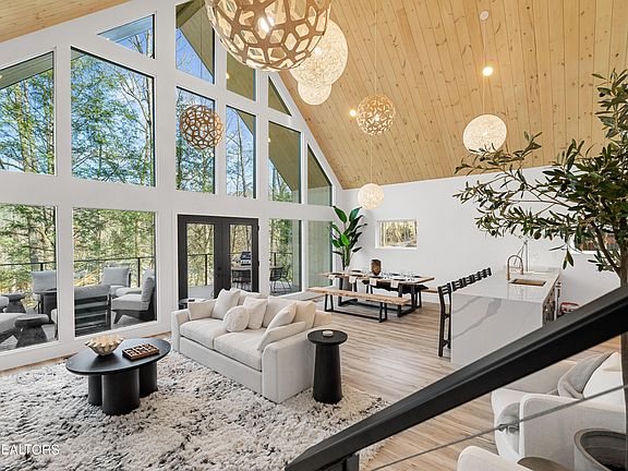 Great Investment Opportunity! New fully furnished 4 BR/4.5 BA luxurious Scandinavian Contemporary home within walking distance of downtown Gatlinburg! Trolley stops are also available nearby! This home comes with a very spacious deck on the main floor and another deck downstairs with a 5-person hot tub. The main level is decked out with two master suites, electric fireplace, a cathedral ceiling, top-of-the-line appliances, high quality LVP flooring, and modern champagne bronze fixtures. Downstairs, you'll find a large game/theater room and another master suite. Another master suite is upstairs. No HOA! Custom-made Amish furniture! This home can sleep up to 12 guests. Driveway includes an electric car charger! Fishing is also available a few hundred yards away on the Little Pigeon River which is stocked with Rainbow Trout by the City of Gatlinburg weekly! Make this your dream home or hot overnight rental! Reduced price is FIRM.